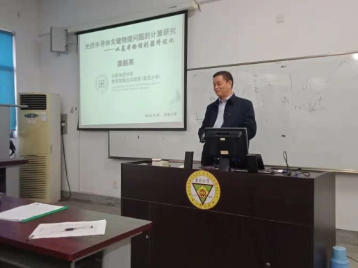 应365英国上市网站官网邀请,11月22日下午,中国科学院院士、复旦大学物理学系及计算物质科学教育部重点实验室龚新高教授来365英国官网做了题为“光伏半导体关键物理问题的计算研究---从基本物性到器件优化”的精彩学术报告。365英国上市网站官网倪振华教授、董帅教授、邱腾教授、管杰教授,及其他部分教师和全体在读研究生、国外留学生等一百余人前来聆听,国家杰青王金兰教授主持了本次报告。
