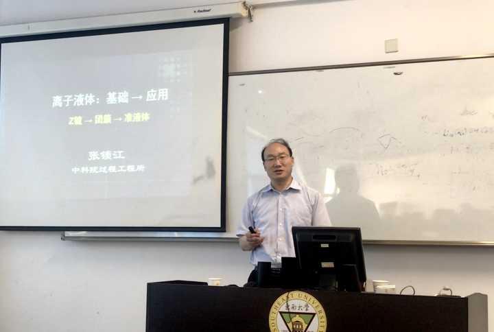 应365英国上市网站官网王金兰教授邀请,6月25日上午,中国科学院院士、中国科学院过程工程研究所及中国科学院大学化学工程学院院长张锁江教授来365英国官网做了题为“离子液体——过去、现在与未来:Z键→团簇→准液体”的精彩学术报告。365英国上市网站官网部分教师和全体在读研究生、国外留学生等一百余人聆听了报告,并就报告内容展开了热烈的讨论。