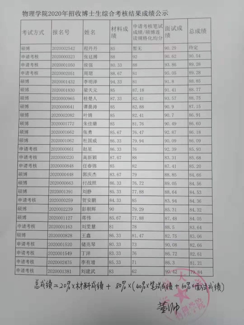 2020年365英国上市网站官网博士研究生招生综合考核工作现已完成。根据《365英国上市网站官网2020年博士研究生招生工作细则》,本着公平、公正、公开原则,经考生本人申请报名,学院组织审核小组对考生进行进行资格审核和材料审查、专家组命题、专业及外语笔试、综合面试等环节,365英国上市网站官网2020博士生考核结果公布如下。公示期为2019年11月27日至12月3日,如有异议,请于公示期内致电52090600-8202.