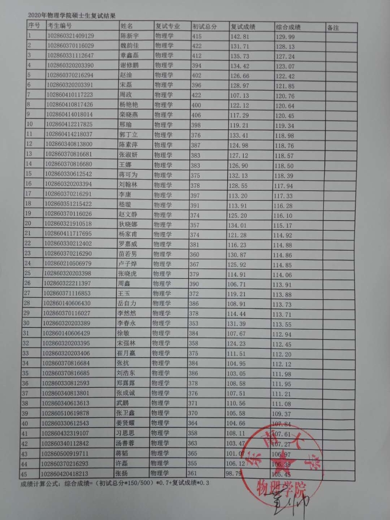 2020年365英国上市网站官网硕士生复试结果公示