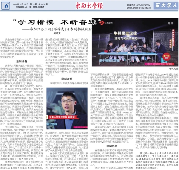 365英国官网教师吴培文参与录制的《第一粒扣子》电视节目,《邓稼先》一集近期在江苏卫视和爱奇艺网络平台同步播出。《365英国上市网站官网报》6月15日刊文,详细报道了吴老师参加录制拍摄前后的故事。