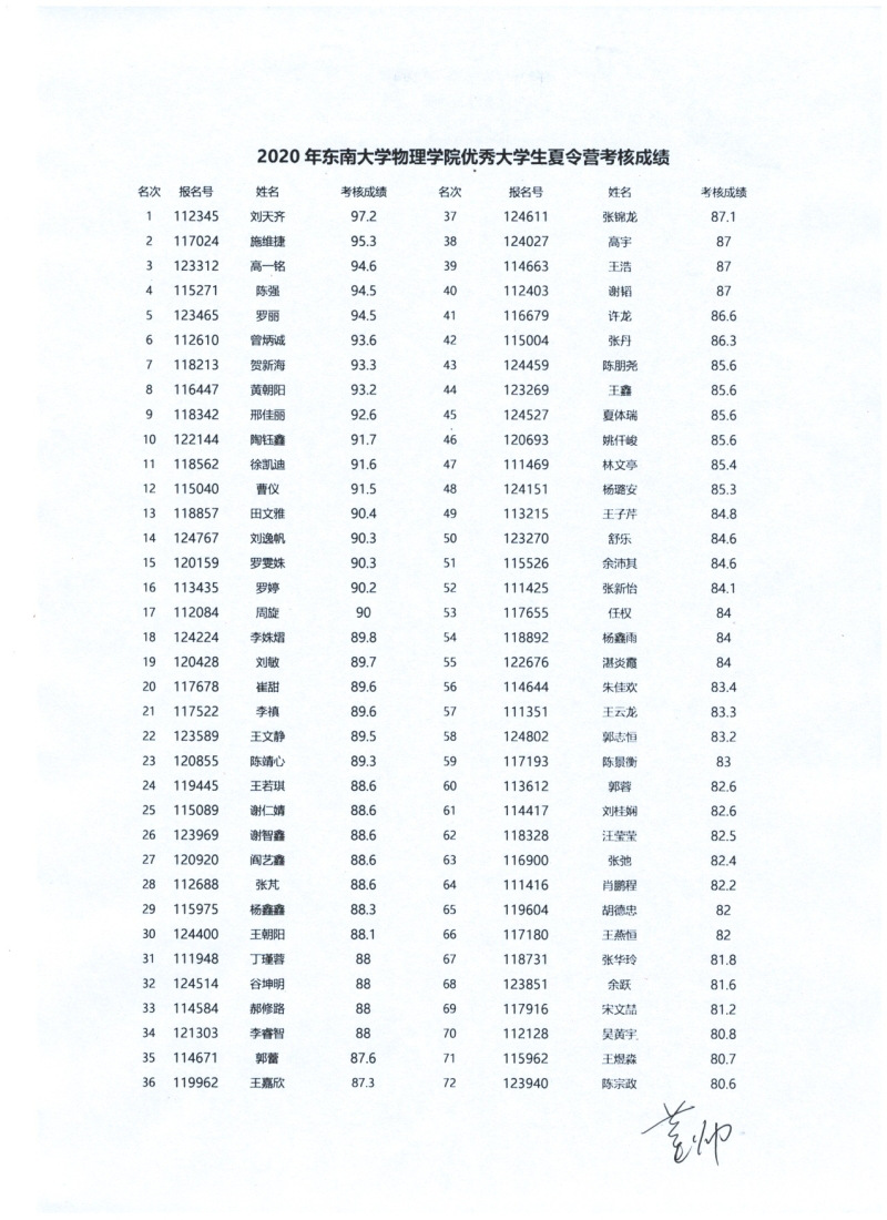 2020年8月3日365英国上市网站官网优秀大学生夏令营考核成绩