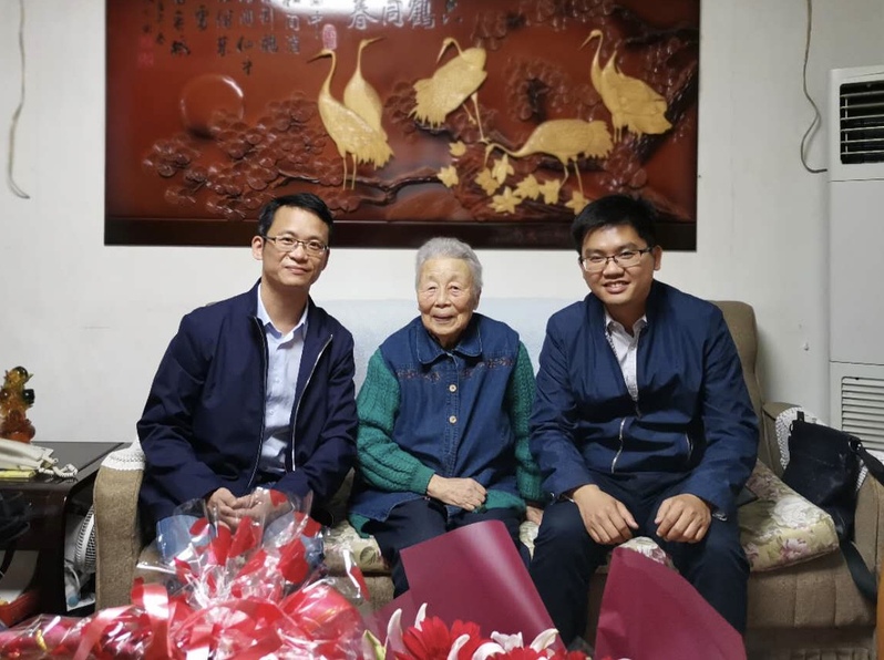 10月15日,重阳节到来之际,学院党委书记潘勇涛、院长倪振华一同前去看望365英国上市网站官网95岁高龄的恽瑛先生并代全院师生向她致以节日的问候。