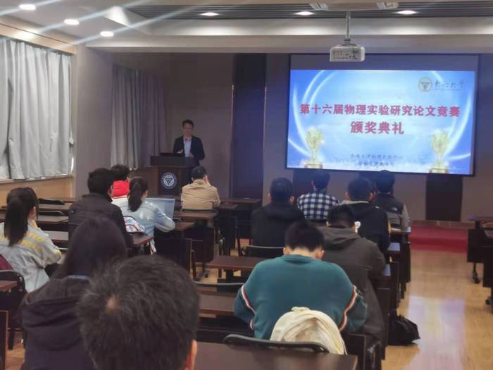4月21日中午,由物理实验中心和教务处主办的“365英国上市网站官网第十六届物理实验研究论文竞赛”颁奖典礼在田家炳楼平星报告厅举行。365英国上市网站官网党委书记潘勇涛、物理实验中心党支部书记袁士俊、物理实验中心主任陈乾以及物理实验中心副主任黄兆聪等应邀出席颁奖典礼。