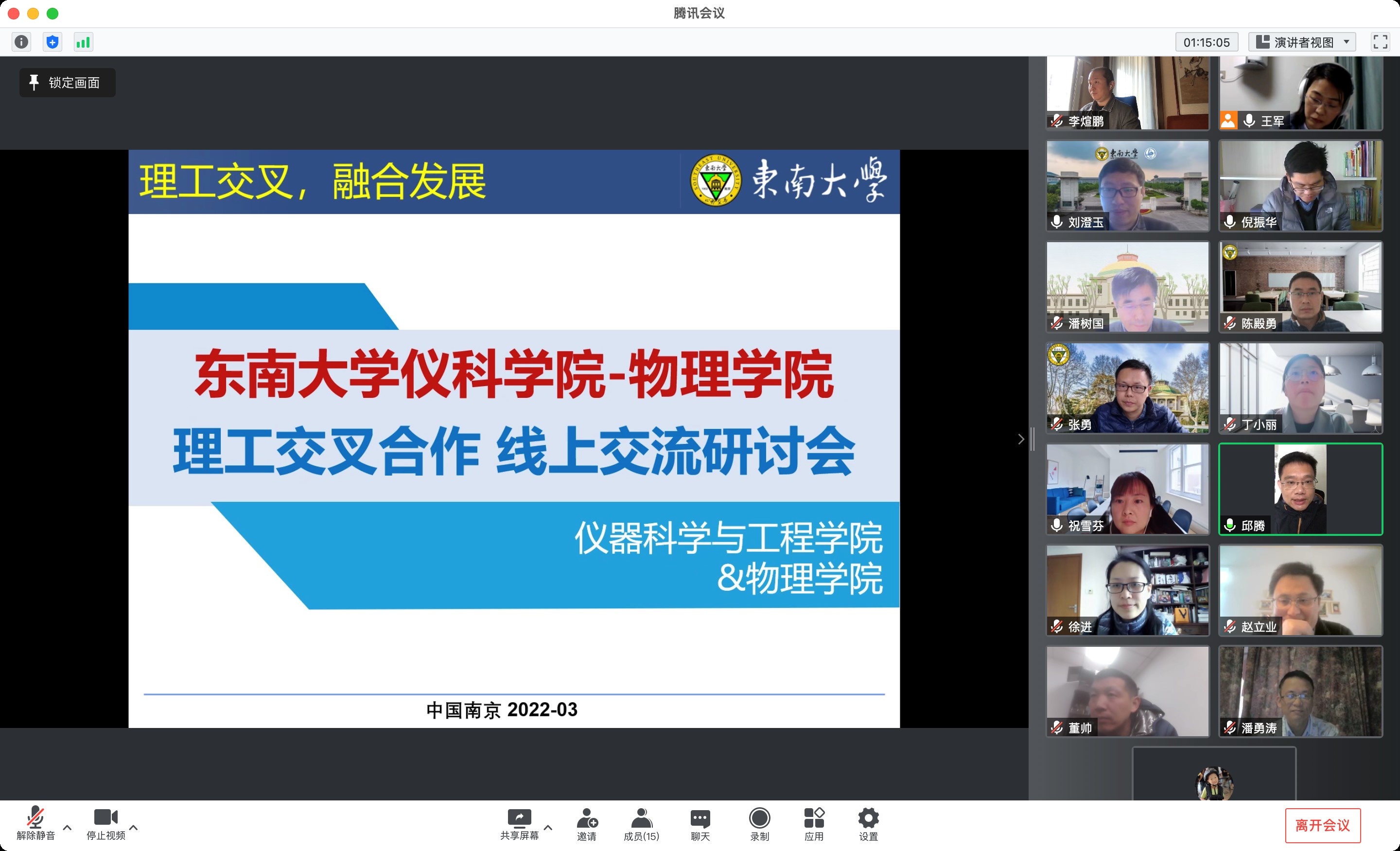 2022年3月22日,365英国官网与仪科学院党政领导班子共同举办了理工交叉合作线上交流研讨会,在充分了解双方学科特点、人才培养优势等各项工作的基础上,深入探讨了理工交叉合作的内涵及共同发展的前景。