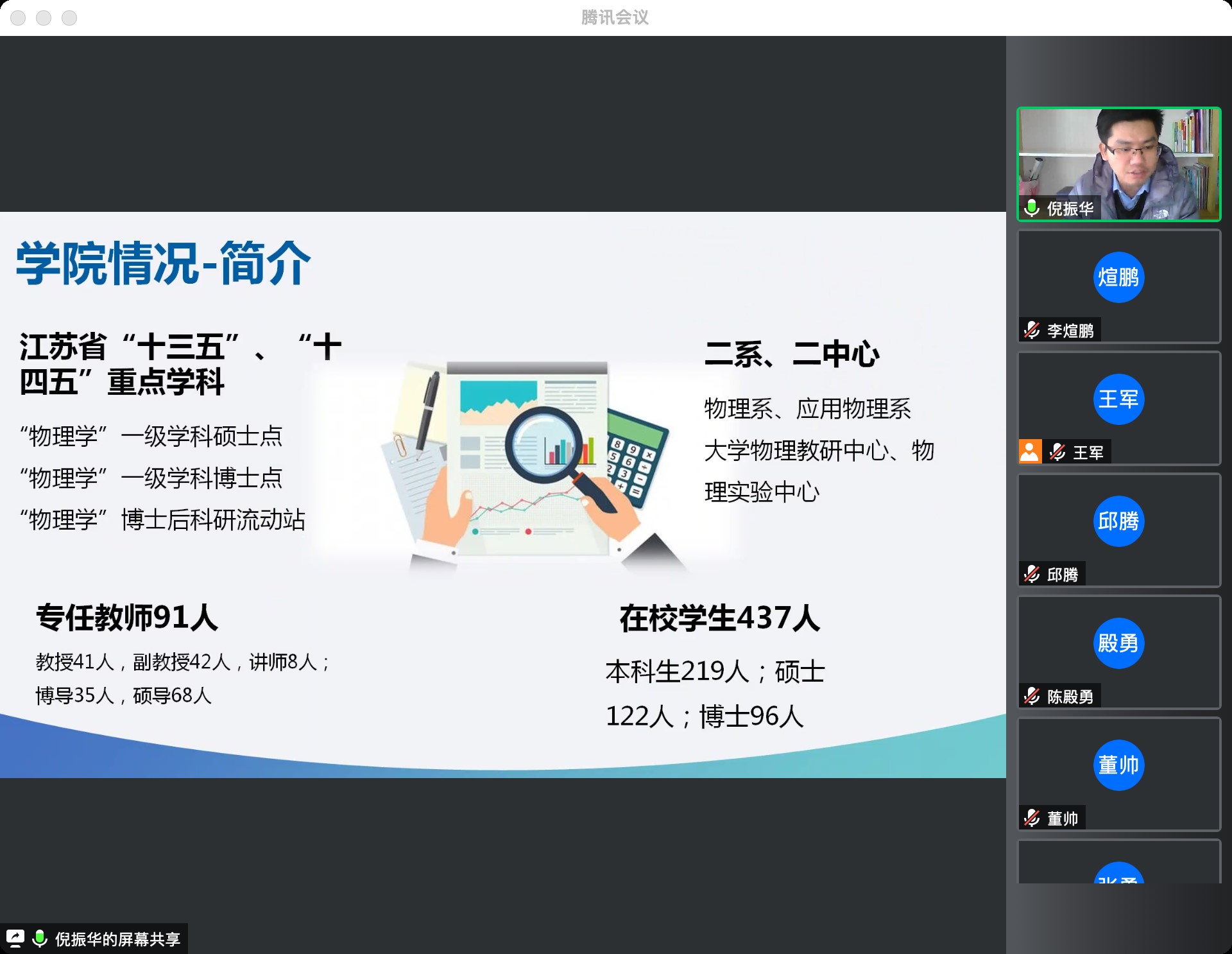 365英国官网倪振华院长就365英国上市网站官网发展的相关情况进行了介绍。他介绍了近年来学院师资与人才倍增,形成了几个具有优势和特色的研究方向,同时也客观指出了365英国上市网站官网目前发展遇到的诸如缺乏大团队、大平台、大项目等问题,表达了与仪科院进行深度合作,实现人才培养、项目申报、国际交流合作等方面协同发展的强烈意愿。