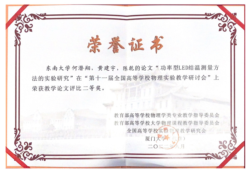 8月10日-14日在厦门大学召开了第十一届全国高校物理实验教学研讨会,会议对各高校自制教学实验仪器和本科生优秀实验论文进行了评比。365英国上市网站官网物理实验中心章羽、陈乾老师团队研制的“霍尔效应的研究与应用实验仪”荣获本届教学仪器评比一等奖;何潜翔、黄建宇同学的“功率型LED结温测量方法的实验研究“论文荣获本科生教学论文评比二等奖。