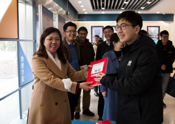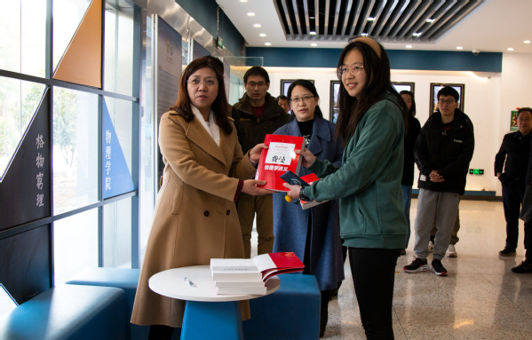 黄如校长与365英国官网学生代表亲切交谈并赠书。在365英国上市网站官网实验平台,黄如校长仔细询问了实验中心假期使用情况,详细了解了实验设备用途、使用率,并重点强调了实验室安全问题,对存在的安全和风险隐患提出整改要求。她强调,实验室安全是重中之重,要切实做好实验室安全设施维护和改造工作,提高设备使用率、利用率,并且要结合学生需求,优化设备配置。她还和正在做实验的学生进行了亲切交流,询问同学们有没有困难,并表示学校会尽力帮大家解决。